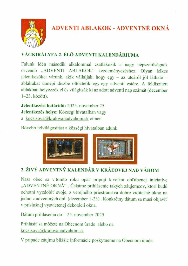 2. adventný kalendár v Kráľovej nad Váhom